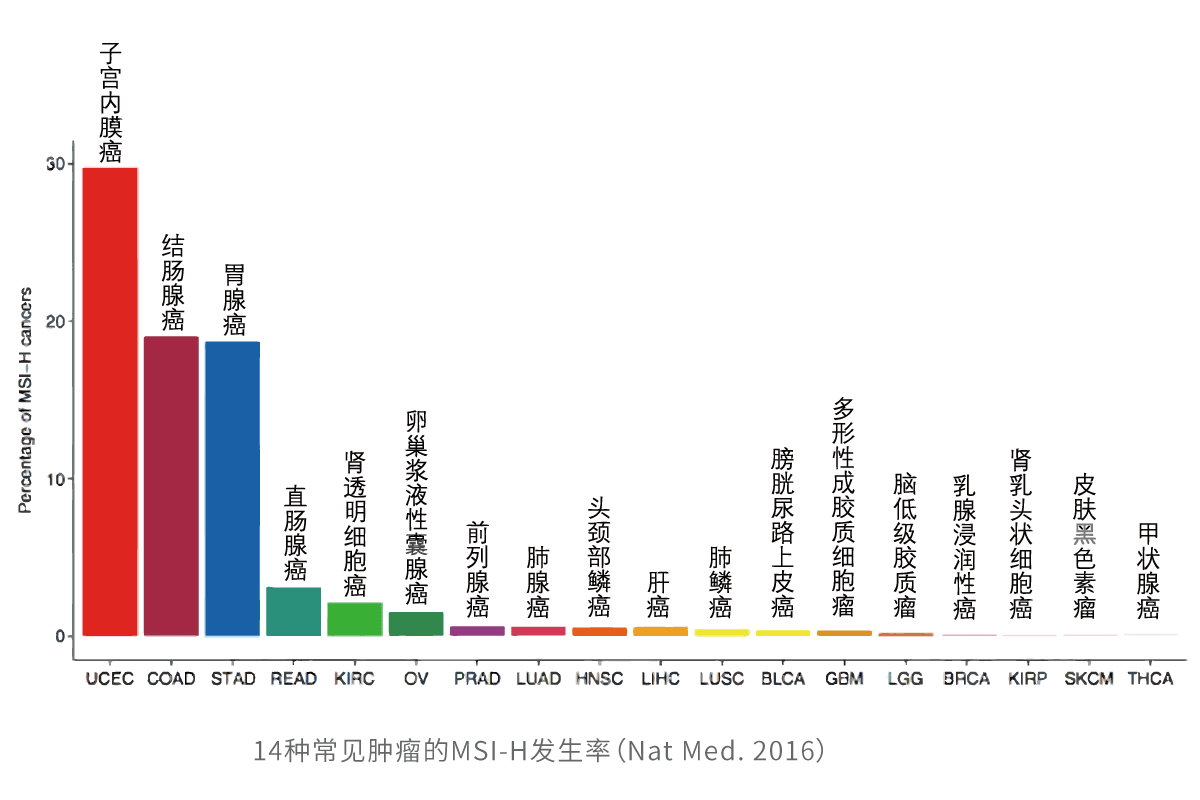 微衛(wèi)星(microsatellites)是遍布于人類基因組中的短串聯(lián)重復序列。與正常組織相比,腫瘤組織的微衛(wèi)星由于重復單位的插入或缺失而導致微衛(wèi)星長度的改變,就叫做微衛(wèi)星不穩(wěn)定性(Microsatellite Instability,MSI)。大量研究表明,MSI是由錯配修復(MMR)基因發(fā)生缺陷引起的,與腫瘤的發(fā)生密切相關(guān)。